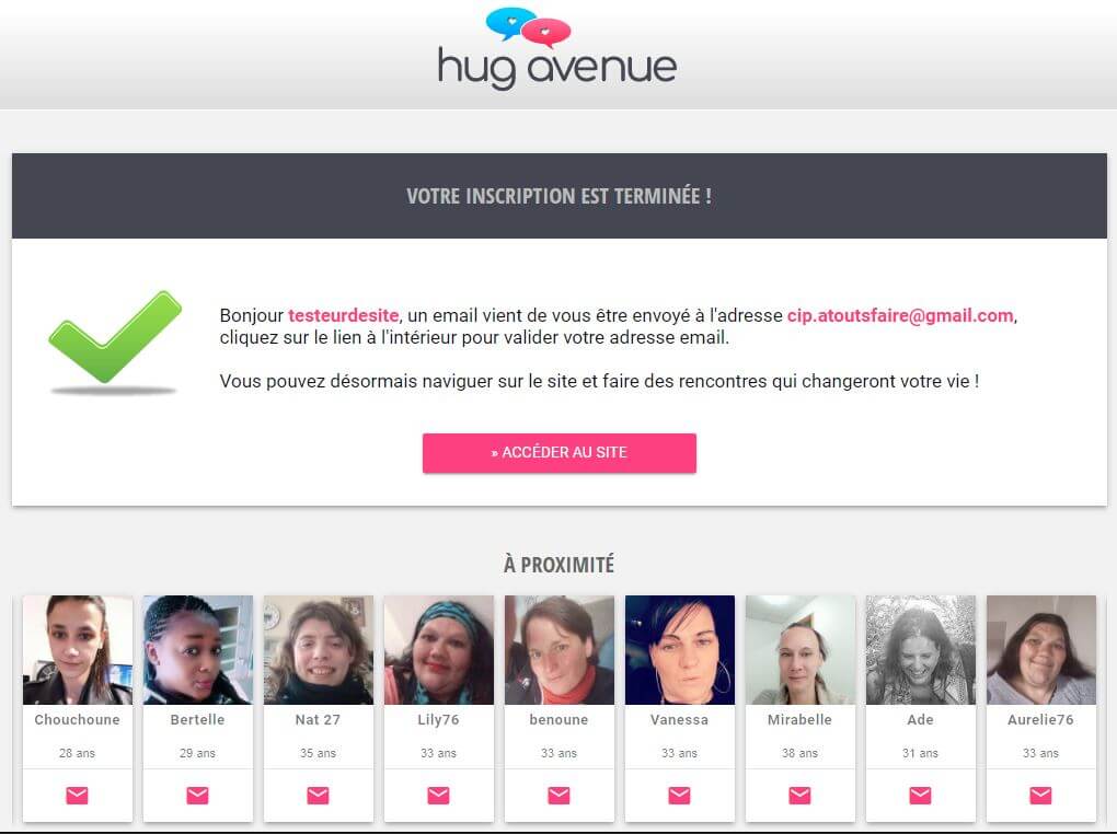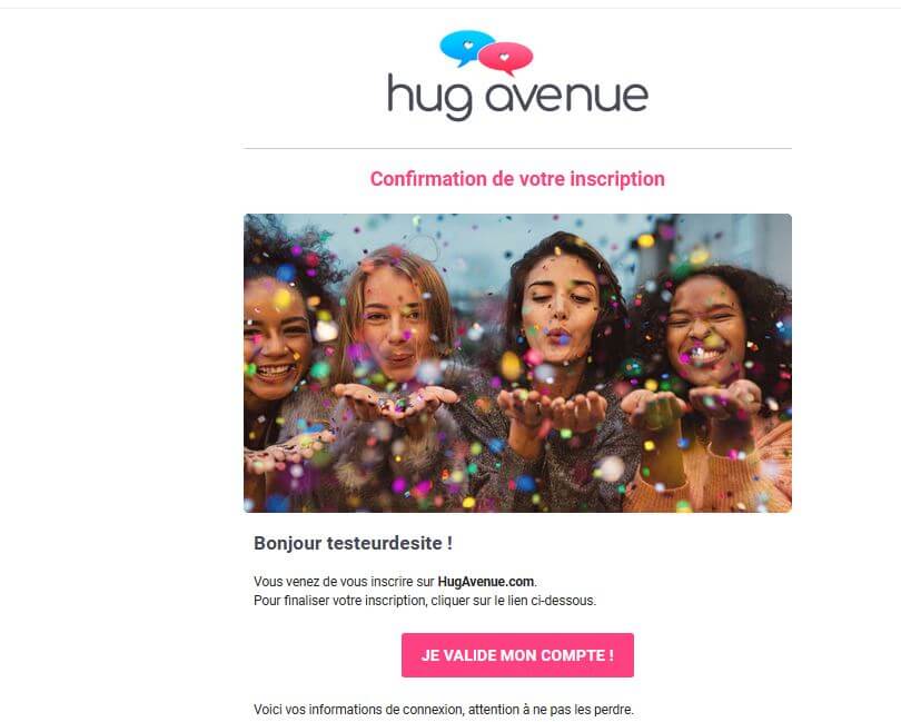 Une fois cette première étape effectuée, Hug avenue demande à tous ses utilisateurs de confirmer leur adresse mail.